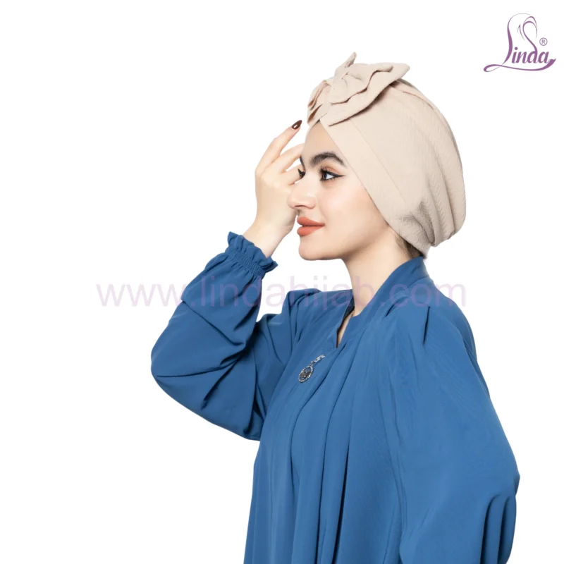 The Beige Bow Accent Turban is a charming and stylish ready-to-wear headpiece that combines classic modesty with a modern, feminine flair. Featuring a beautifully crafted, oversized bow detail at the front, this turban adds instant personality to your look. Its soft, textured fabric provides a comfortable fit while maintaining a structured, voluminous shape that requires absolutely no styling or pins.