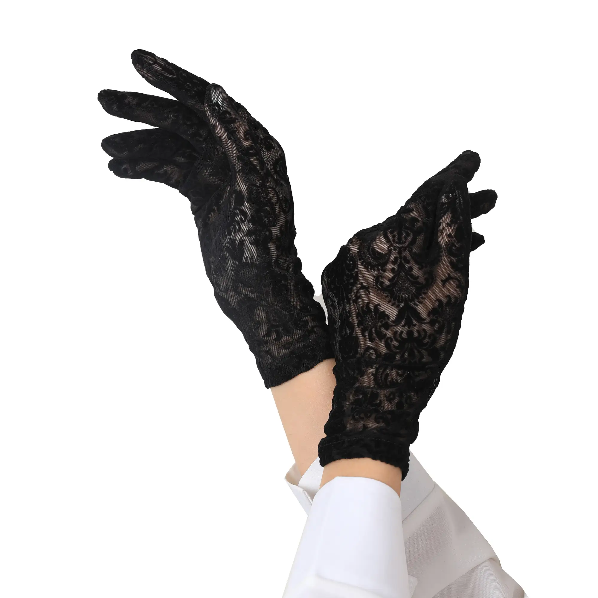 Black Dantel Floral Lace Gloves for Women | Elegant Modest Wear