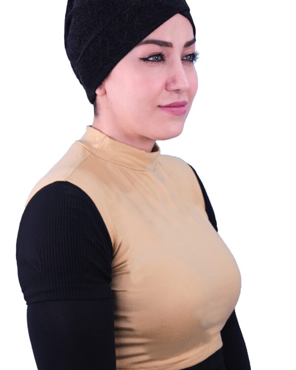 The Black Lace Bib Style Neck Cover offers timeless elegance with practical coverage. Its floral lace overlay, high neckline, and clean bib‑style fit make it a versatile accessory that instantly refines casual and formal looks.