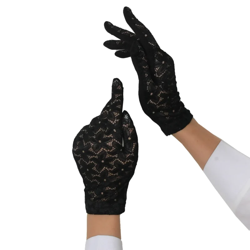 These lace gloves deliver instant elegance with a lightweight, comfortable feel. The semi‑sheer pattern, refined ruching, and sleek black tone make them a versatile accessory that elevates both classic and contemporary outfits.
