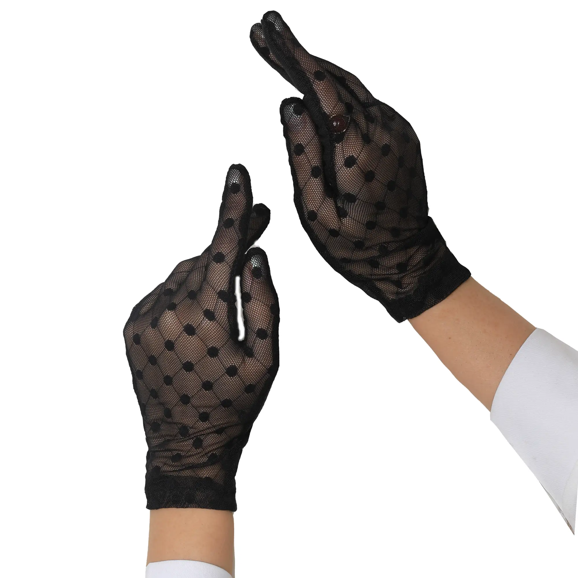 Black Polka Dot Mesh Gloves for Women | Elegant Wear