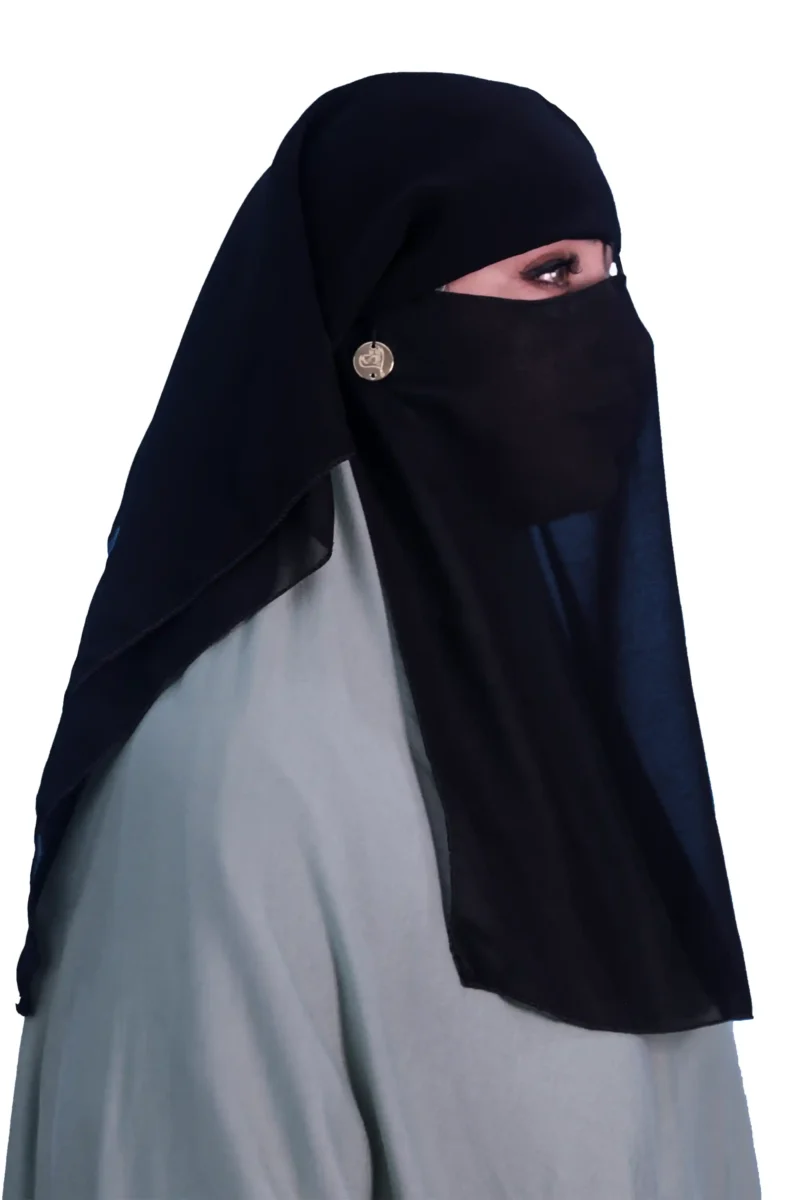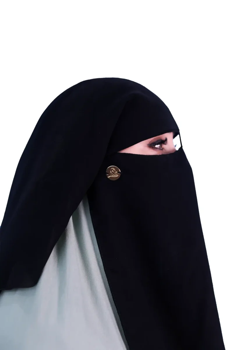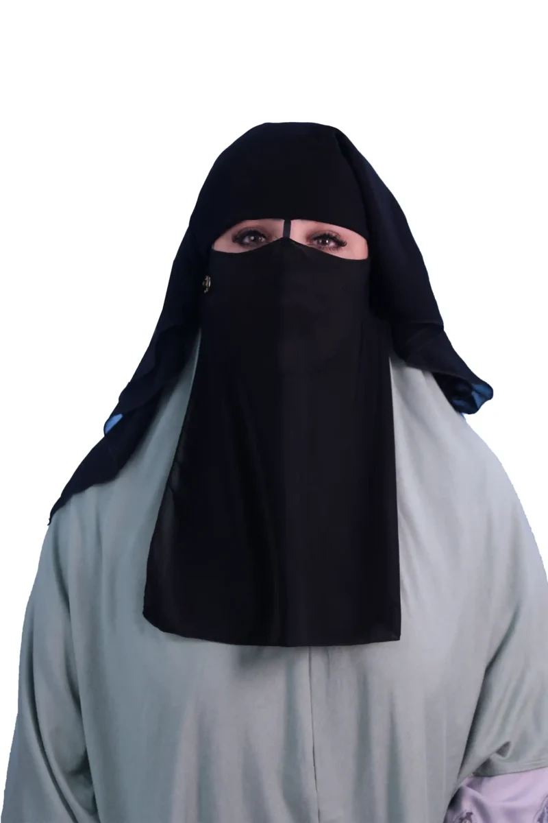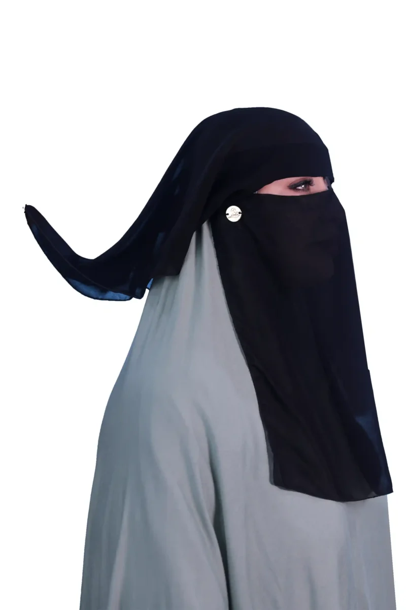 The Classic Two Layer Black Niqab offers timeless modesty and comfort for daily wear and prayer. Crafted from lightweight, breathable fabric, this traditional face veil provides full coverage of the lower face, complementing any abaya or hijab. Its simple, elegant design ensures a secure yet comfortable fit, allowing for clear vision while maintaining deep piety and privacy.
