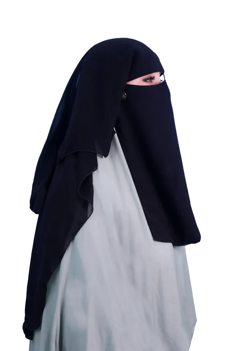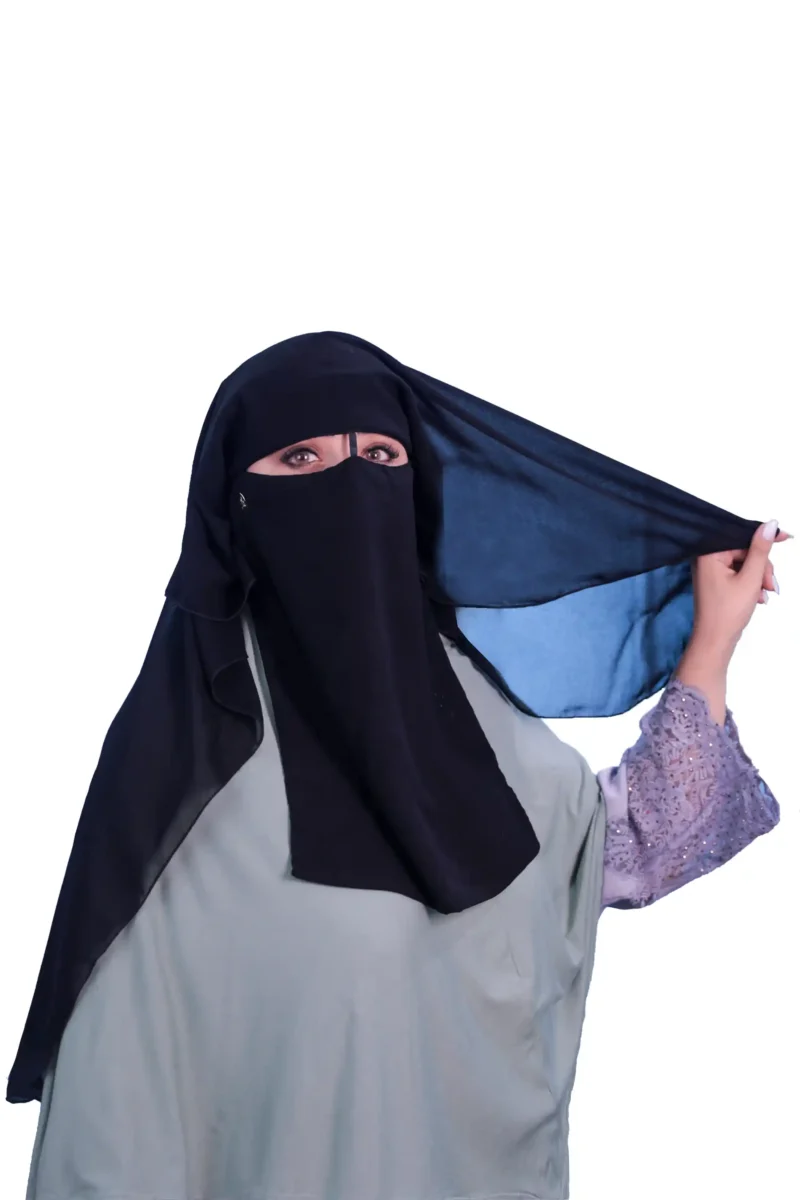 The Classic Two Layer Black Niqab offers traditional modesty with modern comfort. Made from lightweight, breathable fabric, it provides full coverage with ease. Its double-layer design ensures privacy and elegance, making it ideal for daily wear, travel, or religious occasions.