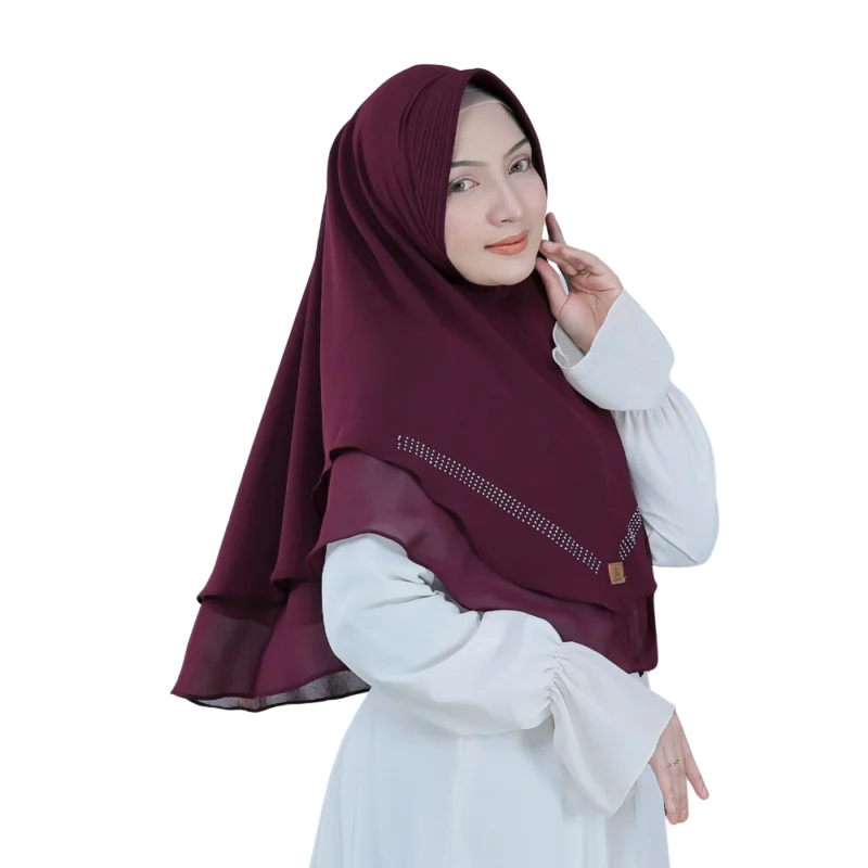 The Elegant Maroon Draped Hijab for Girls seamlessly blends modesty with a luxurious, modern style. Its rich maroon tone, structured drape, and elegant line of shimmering rhinestones make it an exceptional choice for those who desire a sophisticated and easy-to-wear hijab for both everyday elegance and festive occasions.