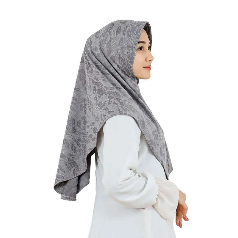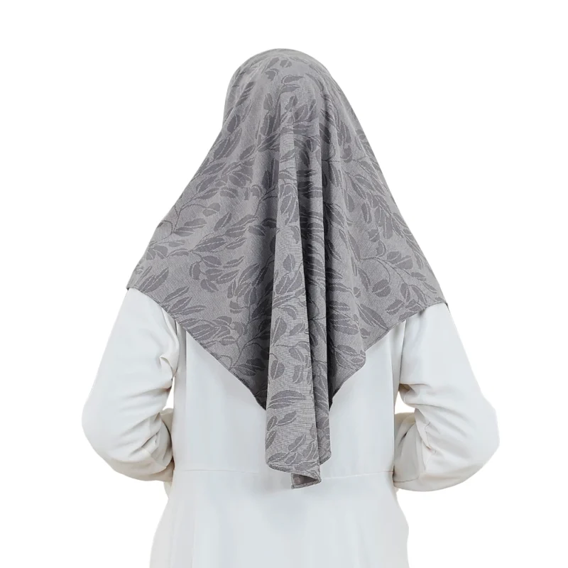 • Design: Single-layer, streamlined khimar style that provides generous coverage over the chest and shoulders. The entire surface is covered in the elegant floral pattern. It is finished with a small, stylish faux leather brand tag near the front point.