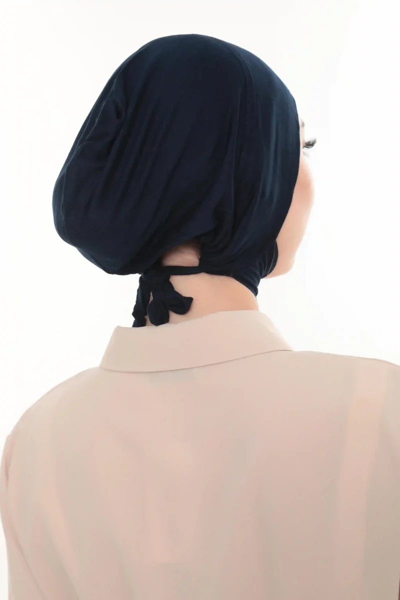 The Jet Black Neck Tie Turban Bonnet blends sophistication with comfort. Made from soft, breathable stretch fabric, it features an adjustable tie for a custom fit. Ideal for daily modest wear, events, or travel, its deep black hue adds timeless elegance to any outfit.