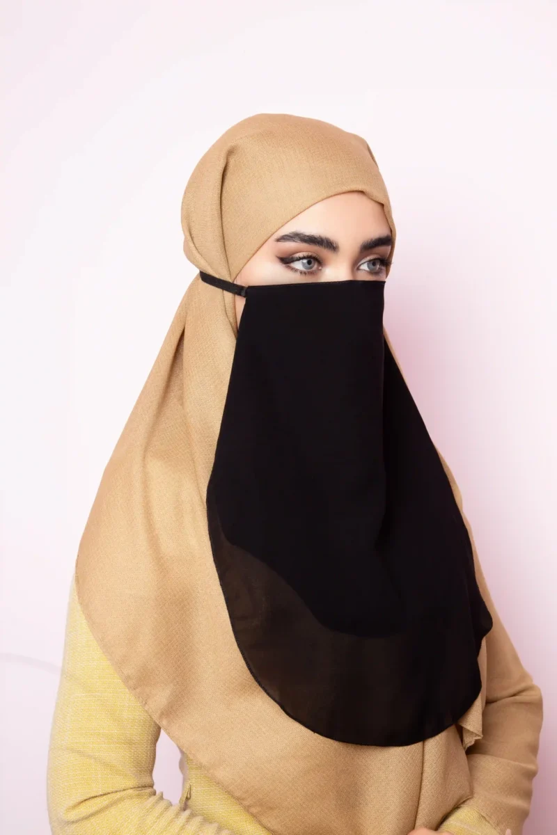 The Elegant Two Layer Islamic Niqab for Women ensures modesty with grace. Made from soft, breathable fabric, it offers comfort, optimal eye visibility, and refined coverage. Its flowing dual-layer design complements any hijab, perfect for daily devotion, public wear, and formal settings.
