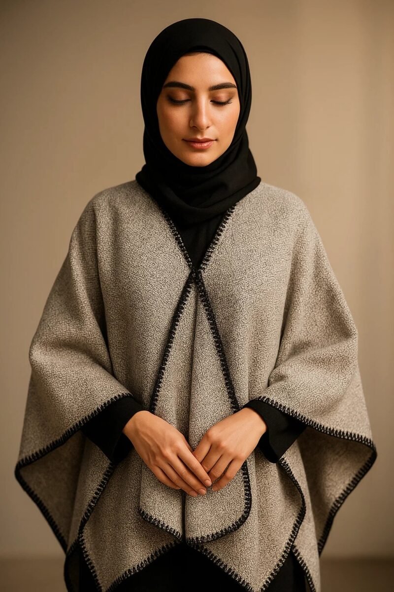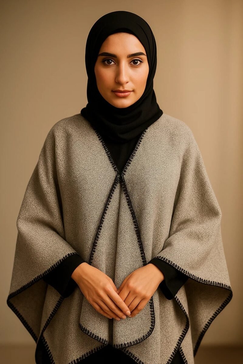 Be the first to review “Warm Two-Tone Poncho for Hijabi & Modest Wear | Elegant Contrast-Trim Abaya Outerwear Cape for Winter (Taupe & Black)”