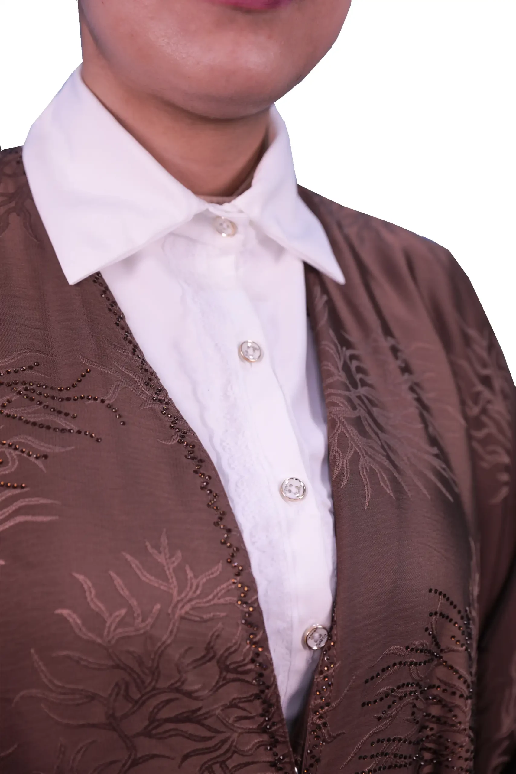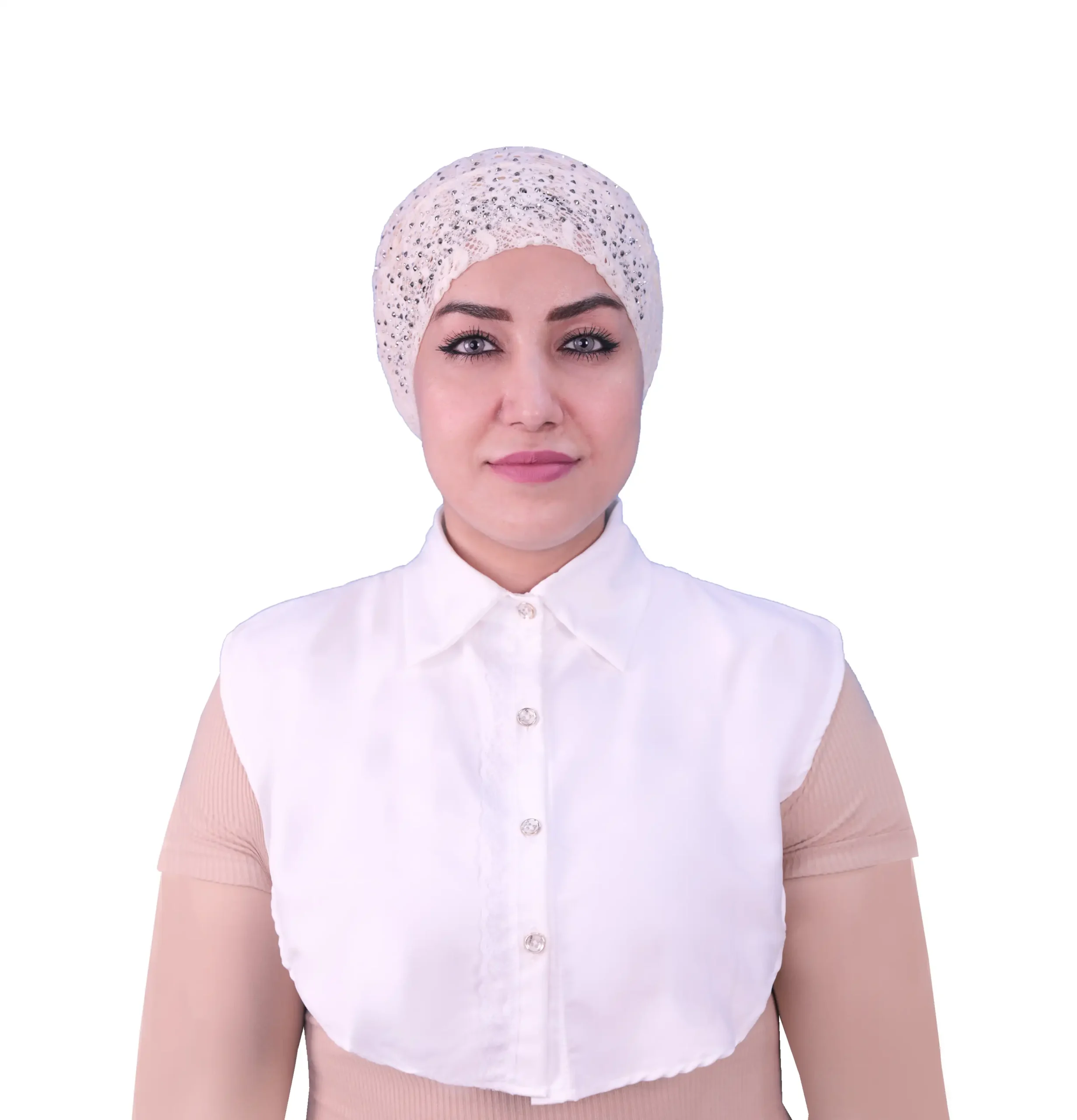 The Crisp White Buttoned Neck Cover for Women offers modest coverage with a polished look. Crafted from smooth, lightweight fabric, it sits neatly over the chest and shoulders with a structured fit. Featuring a buttoned front, it’s perfect for layering under abayas, tops, or jackets for formal wear.