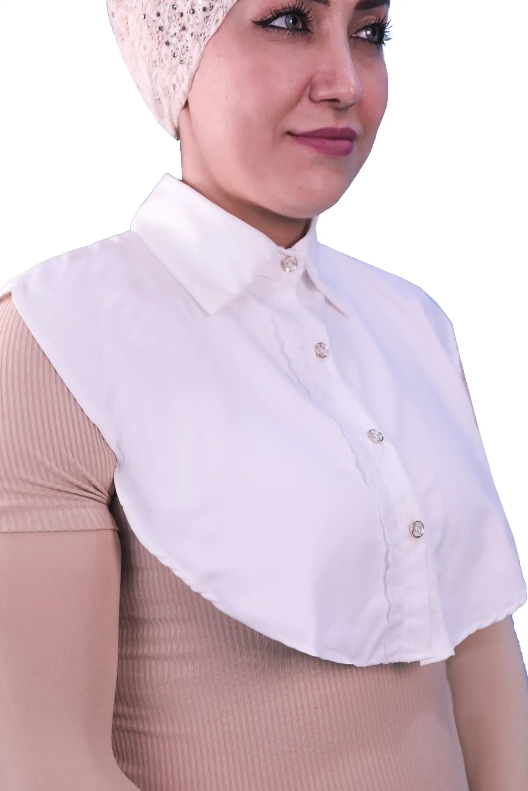 Crisp White Buttoned Neck Cover for Women – Modest Layering