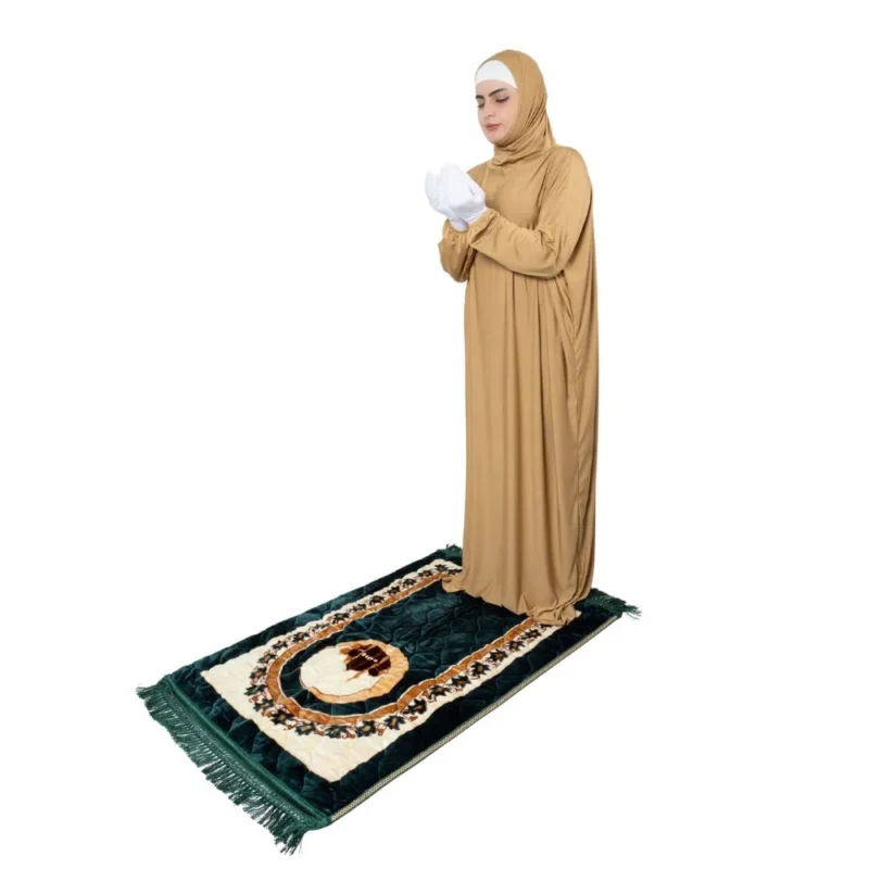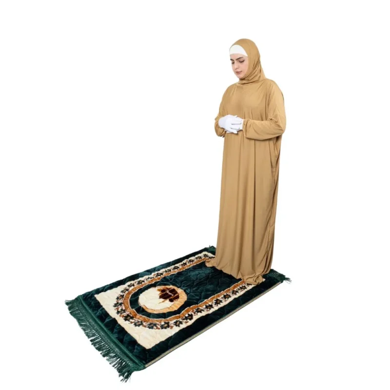 The clean, plain design, warm neutral colour, and complete coverage of this prayer dress make it an exceptional choice for Umrah and Hajj. The smooth, breathable fabric is comfortable in warm climates, the one-piece design means it can be slipped on quickly over any outfit, and the plain camel colour is perfectly suited to the focused, spiritually elevated atmosphere of the sacred sites. It folds compactly for packing and requires no ironing or special care — a truly practical and beautiful choice for the journey of a lifetime.