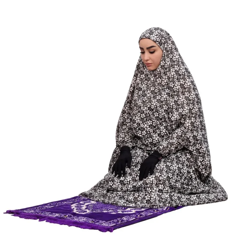 This prayer set is ideal for daily salah at home, mosque visits, Ramadan and Tarawih prayers, Eid prayers, Umrah and Hajj, and as a meaningful and beautiful gift for any Muslim woman who values complete and dignified modest prayer coverage.