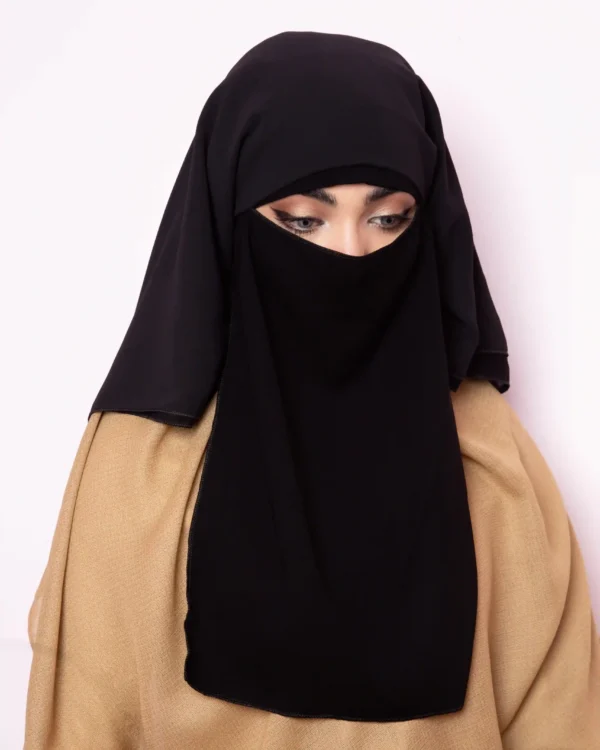Long Layered Islamic Niqab for Women – Black Modest Style